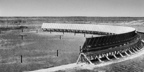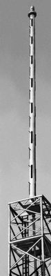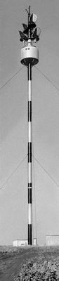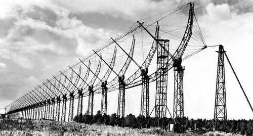 А. метровых и дециметровых волн. На метровых и дециметровых волнах для теле- и радиопередач применяют многоэтажные (до 30 этажей) турникетные (рис. 10), панельные, щелевые А. и другие типы А. с круговыми диаграммами направленности в горизонтальной плоскости и узкими в вертикальной плоскости (см. Телевизионная антенна). КНД этих А. пропорционален числу этажей и находится в пределах от 6 до нескольких десятков. Для увеличения зоны действия эти А. устанавливают на башнях или мачтах высотой 100—300 м и более. Самая высокая в мире телевизионная башня, высотой 533 м, сооружена в Москве. Приём телевизионных передач ведётся на симметричный вибратор, А. типа «Волновой канал» (рис. 11) и др., которые обычно устанавливаются на крышах домов или высоких опорах. В больших (многоквартирных) домах применяют коллективную А., состоящую из собственно А., усилителя высокой частоты и системы распределительных фидеров, подводящих энергию высокой частоты с выхода усилителя к входам телевизоров. В качестве собственно А. в системе коллективного приёма применяют А. типа «волновой канал» и др. Число телевизоров, обслуживаемых одной коллективной А., доходит до нескольких сотен. Существенный вклад в разработку передающих и приёмных телевизионных А. внесли советские учёные Б. В. Брауде, В. Д. Кузнецов и др., зарубежные учёные: американец Н. Линденблад и др. На метровых волнах для связи в пределах прямой видимости применяют симметричный и несимметричный вибраторы, Бевереджа А. и др.; для ионосферной связи — синфазную многовибраторную решётку, А. типа «волновой канал», ромбическую А. и др.; для Метеорной радиосвязи (См. Метеорная радиосвязь) — преимущественно А. типа «волновой канал».