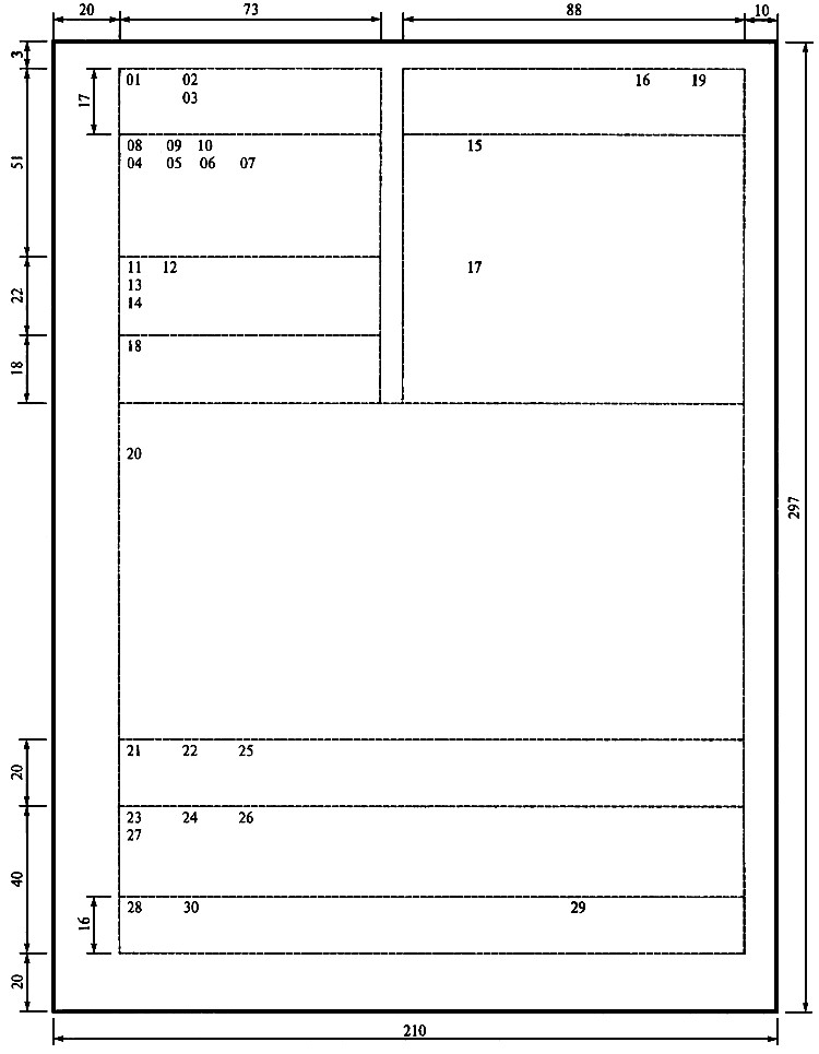 Рисунок А.1 - Расположение реквизитов и границы зон на формате А4 углового бланка