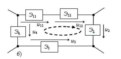Рис.1.2. Токи в узле цепи (а) и напряжения в контуре (б)