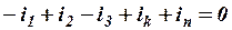 Алгебраическая сумма токов ветвей, сходящихся в узле, равна нулю для любого момента времени