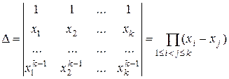 Определитель системы (5) есть известный в алгебре определитель Вандермонда: