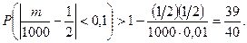 Здесь n =1000, p=q =1/2, ε =0,1. Используя неравенство (3), получим: