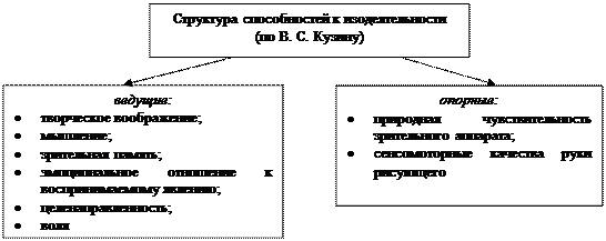 Вопрос о структуре способностей к изобразительной деятельности разрабатывали психологи Е. И. Игнатьев, А. Г. Ковалёв, В. И. Киреенко, В. С. Кузин и др.