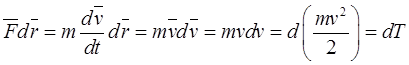 Приращение кинетической энергии материальной точки (тела) на элементарном перемещении равно элементарной работе на том же перемещении.