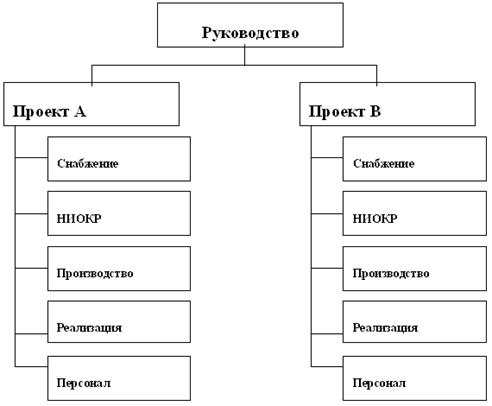 Наиболее широко распространены так называемые чистые проекты, представляющие собой уменьшенную по масштабам копию обычного подразделения.