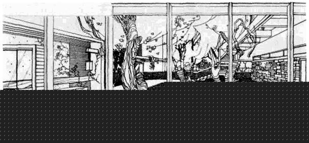 - создание обширных пространств с искусственным микроклиматом и наконец, имитация природы вместо ее присутствия.