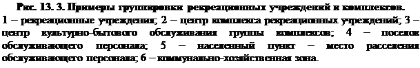Группировка рекреационных учреждений в комплексы позволяет обеспечить отдыхающим больший, чем в отдельном учреждении отдыха, набор услуг. В то же время необходимо понимать, что чрезмерная концентрация отдыхающих снижает возможности спокойного отдыха, общения с природой (рис. 13.3).
