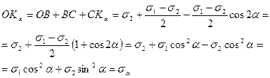 С учетом этих значений нормальные напряжения на произвольной площадке определятся равенством