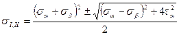 C учетом выражений (4.12), (4.13) получим следующие формулы для главных напряжений