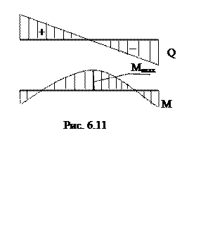 (рис. 6.11), то момент в этом сечении принимает экстремальное значение. При смене знака с плюса на минус он будет максимальным, при смене знака с минуса на плюс - минимальным.