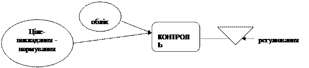 Контроль, як функція менеджменту є спеціалізованим різновидом управлінської діяльності, зміст якої полягає в одержанні інформації від функцій цілепокладання і нормування та обліку, співставленні одержаної інформації та передаванні наслідків порівняння для виконання функції регулювання. Графічна інтерпретація контролю як функції менеджменту представлена на рис 3.4.