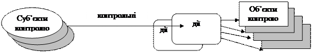 Процес контролю – це сукупність дій, які суб’єкти, що контролюють, вживають стосовно підконтрольних об’єктів для досягнення мети контролю. Графічна інтерпретація контролю як процесу представлена на рис. 3.6.