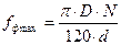 где D – диаметр барабана, мм; N –скорость вращения барабана, об/мин;