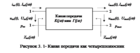 Канал передачи, как совокупность технических средств и среды распространения электрического сигнала, представляет каскадное соединение различных четырехполюсников, осуществляющих фильтрацию, преобразование, усиление и коррекцию сигналов. Следовательно, канал можно представить эквивалентным четырехполюсником, параметры и характеристики которого определяют качество передачи сигналов, рис. 3.1.