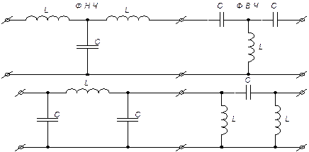 На основе ФВЧ и ФНЧ типа “К” (LC) можно построить полосовые и режекторные фильтры.
