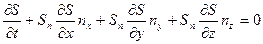 Рассмотрим уравнение поверхности S в момент времени t+dt: