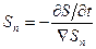 т. е. нормальная составляющая скорости свободной поверхности равна нормальной составляющей жидкой частицы, лежащей на свободной поверхности. Иными словами, кинематическое условие также является, по существу, условием непротекания. Придадим этому условию более компактный вид. Для этого выразим скорость Sn