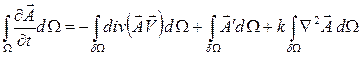 С помощью теоремы Гаусса-Остроградского можно перейти от поверхностных интегралов к объемным. Тогда получим уравнение баланса в дивергентной (или консервативной) форме: