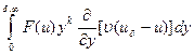 , где F(u) — произвольная дифференцируемая функция, k=0, 1, 2..., и проинтегрируем полученное выражение по у в пределах пограничного слоя. Если рассматривается асимптотический пограничный слой, то интегрирование должно осуществляться от 0 до бесконечности. Если же рассматривается пограничный слой конечной толщины