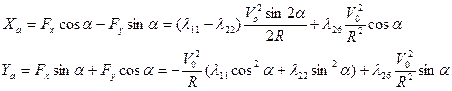 Вычислим составляющие полной гидродинамической силы F в скоростной системе координат: