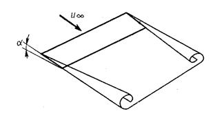 Рассмотрим обтекание прямоугольного крыла, расположенного под углом атаки