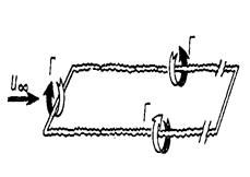 Основное интегральное уравнение несущей поверхности (5.11) можно получить, опираясь также на образ подковообразного вихря (рис.5.15), полочка которого (присоединенный вихрь) перпендикулярна скорости набегающего потока, а свободные вихри уходят в бесконечность.