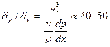 -масштаб градиента давления. Степень воздействия градиента давления на течение в различных областях турбулентного пограничного слоя будет определяться соотношением масштаба δр с масштабами δV и δ. При dр/dх = 0 имеем