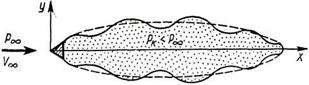 На некоторых режимах стенки каверны приобретают волнообразные деформации и тогда говорят о пульсирующих кавернах (рис. 7.20). На длине каверны может располагаться одна, две … пять волн. Иногда каверна теряет общую устойчивость и она скачкообразно меняет свой объем (порционный отрыв каверны).