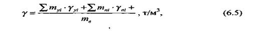 где γyi и уni — объемная удельная плоскость соответственно угольного и породного слоев мощностью соответственно myj и mni в пределах вынимаемой мощности пласта тв (при однородном по плотности угля и простом строении пласта γ=γi).