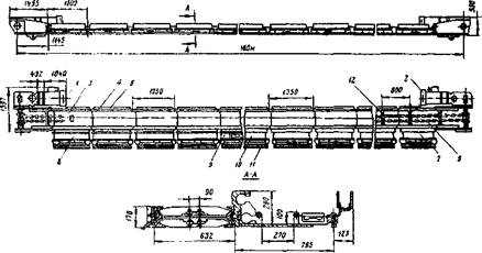 Рисунок 7.15 - Скребковый конвейер типа СПЦ-162:1,2- приводные блоки;