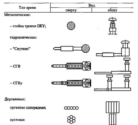 Таблица 11.6 - Принятые графические изображения типовых посадочных индивидуальных крепей