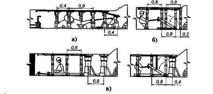 и переноски крепи: а, в- 1,6 м; б-1 м; г, д — 0,8 м и а, в- 1,6 м; б- 2 м; г,