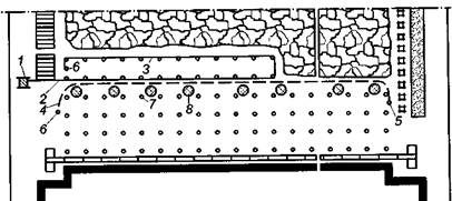 посадки на участках; 3 - поперечная оградительная органка, установленная