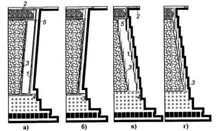 висит от их конструкции и схемы размещения призабойных крепежных рам. На рисунке 11.8 схематически представлены некоторые варианты посадки кровли в лавах при выемке тонких пологонаклонных угольных пластов.
