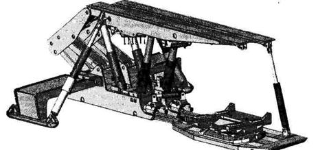 Механизированные крепи сопряжений (далее MKC) предназначены для поддержания сопряжения лавы с прилегающими выработками при выносе приводных головок лавного скребкового конвейера на последние, а также выполнения функции передвижки, разворота этих головок и регулирования высоты разгрузки под лавой на транспортное средство подготовительной выработки (как правило на скребковый конвейер штрека). По сути эти гид-рофицированные распорные крепи механизированным способом выполняют следующие рабочие операции: постоянное поддержание совместно с крепью подготовительной выработки кровли над приводами лавного конвейера, их передвижку с установкой в нужное положение по высоте и наклону относительного конвейера подготовительной выработки, а также подтягивание к ней или отталкивания в лаву става очистного скребкового конвейера. Многофункциональность MKC выдвигает ряд их конструктивных сложностей при наличии различных распорно-несущих элементов и средств их перемещения. Универсальность MKC заключается в том, что она должна быть также адаптирована к любой по форме крепи выработки с различными высотами подрывки кровли и почвы, а также возможности ее применения в поддерживаемой для повторного использования или погашаемой вслед за проходом лавы выработки.