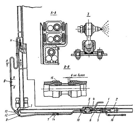 Рисунок 16.10- Оросительная система очистного механизированного комплекса при выемке угля комбайном