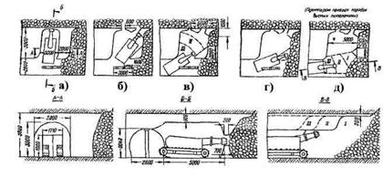 а, б, в, г и д - последовательности выемки угля в заходке комбайном