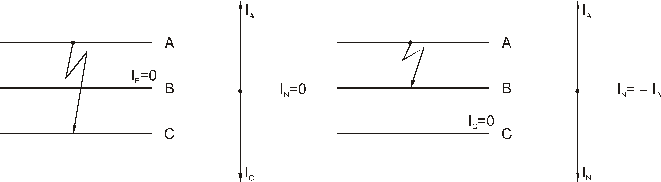 3 – фазное КЗ: токи проходят по обоим реле и в обратном проводе: