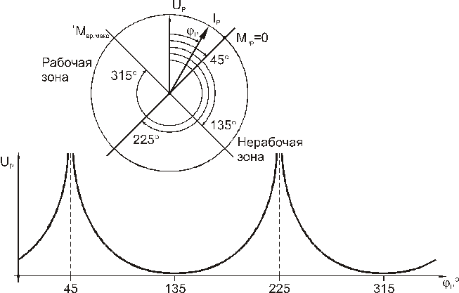 На рис.7.2.8 изображена угловая характеристика реле смешанного типа с углом a= – 45°.
