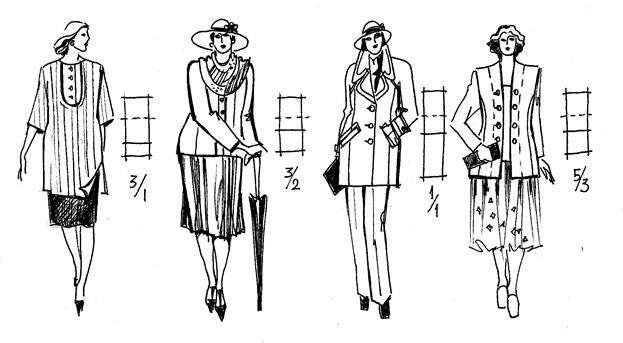 Рис.8 Пропорциональные отношения в одежде для высоких фигур