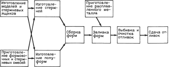 Рис. 5.1. Схема технологического процесса изготовления отливок в песчаных формах