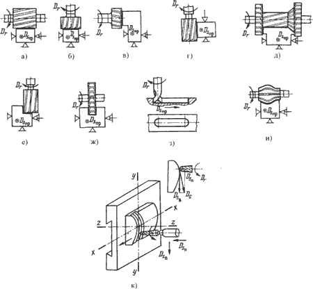 Рис. 20.1. Схемы обработки заготовок на станках фрезерной группы.