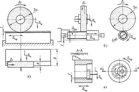 Различают следующие основные схемы шлифования: плоское, круглое, внутреннее (рис. 20.2).