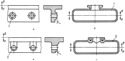 Рис. 8.7. Конструкции литой детали: а, б – нетехнологичные,; в, г - технологичные