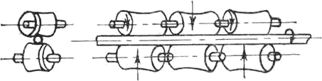 Рис. 10.7. Схема правки проката на машинах с косо расположенными гиперболоидальными роликами