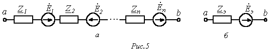 Рассмотрим участок цепи на рис. 5,а. При расчете внешней по отношению к этому участку цепи данную ветвь можно свести к виду на рис. 5,б, где