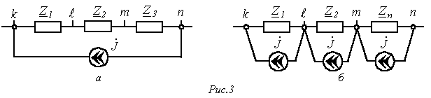 (см. рис. 3,а) включен между узлами k и n. Подключение к узлам l и m по два одинаковых по величине и противоположно направленных источника тока