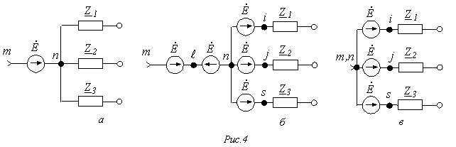 . Поэтому при наличии таких ветвей исходная схема перед составлением уравнений должна быть подвергнута соответствующему преобразованию, иллюстрируемому рис. 3.