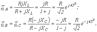 Запишем выражения комплексных сопротивлений фаз нагрузки: