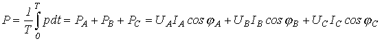 Мгновенная мощность трехфазного источника энергии равна сумме мгновенных мощностей его фаз:
